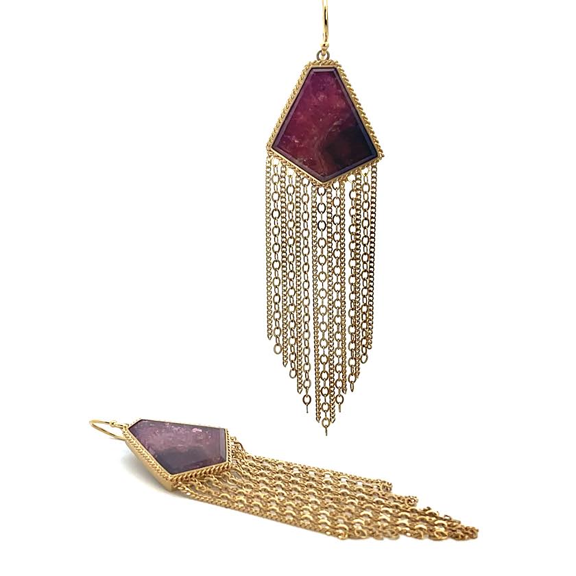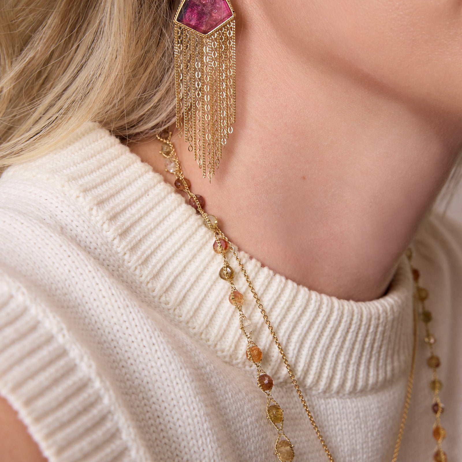 Sara Freedenfeld honors her late grandmother, Amalia, with her stunning jewelry collection Amali. While traveling in South America, Sara became interested in and began to learn macrame in the Andes Mountains of Chile. Sara has a truly distinct vision that combines her evident passion for colored gemstones with her textile approach to goldsmithing. Many of her pieces are one-of-a-kind, created with unique gemstones and designed with woven or draped gold elements that create delicate movement when worn.