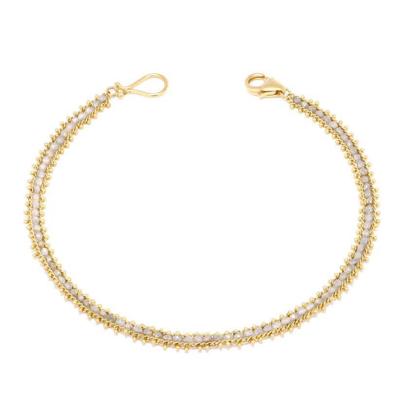18 karat Yellow Gold and Silver Diamond Textile Line Bracelet