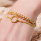 18 karat yellow gold and silver diamond textile line bracelet designed and created by Amali. The bracelet features round faceted silver diamonds woven into an 18 karat yellow gold textile line. The bracelet has a lobster claw clasp. The style number is B-1303-SD.
