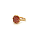 18 karat yellow gold and sunstone ring designed and created by Amali. The ring features a faceted rose cut sunstone that weights 4.13cts. The sunstone is bezel set with dot prongs and a curb chain border. The ring is finished in Amali’s signature matte finish. Style number R-2776-SS