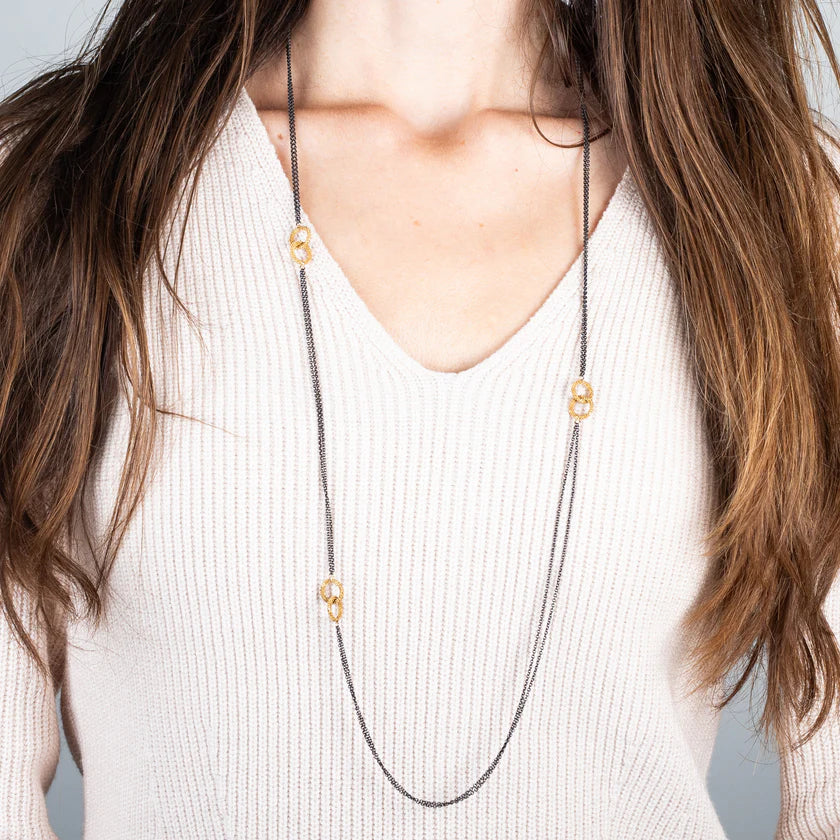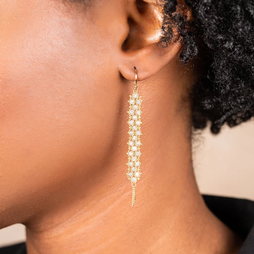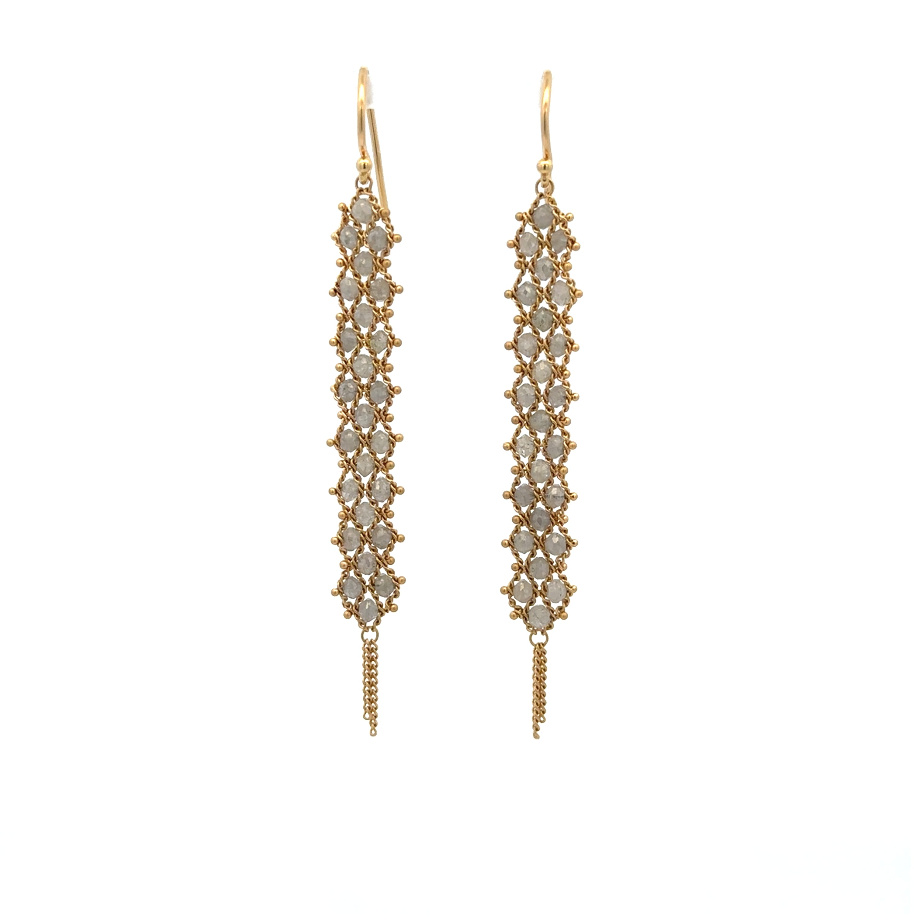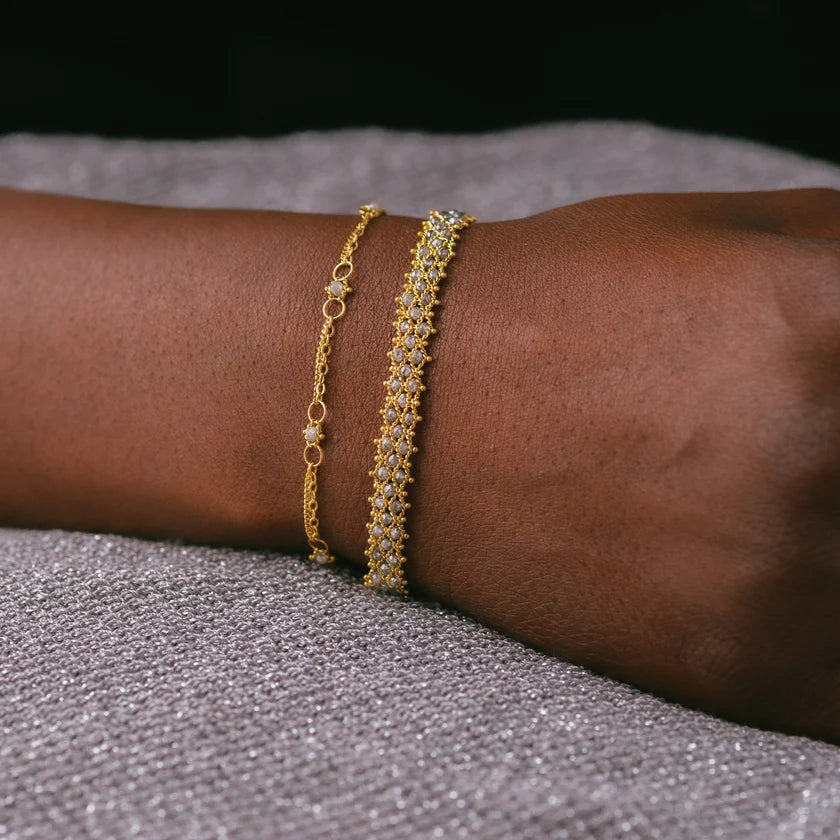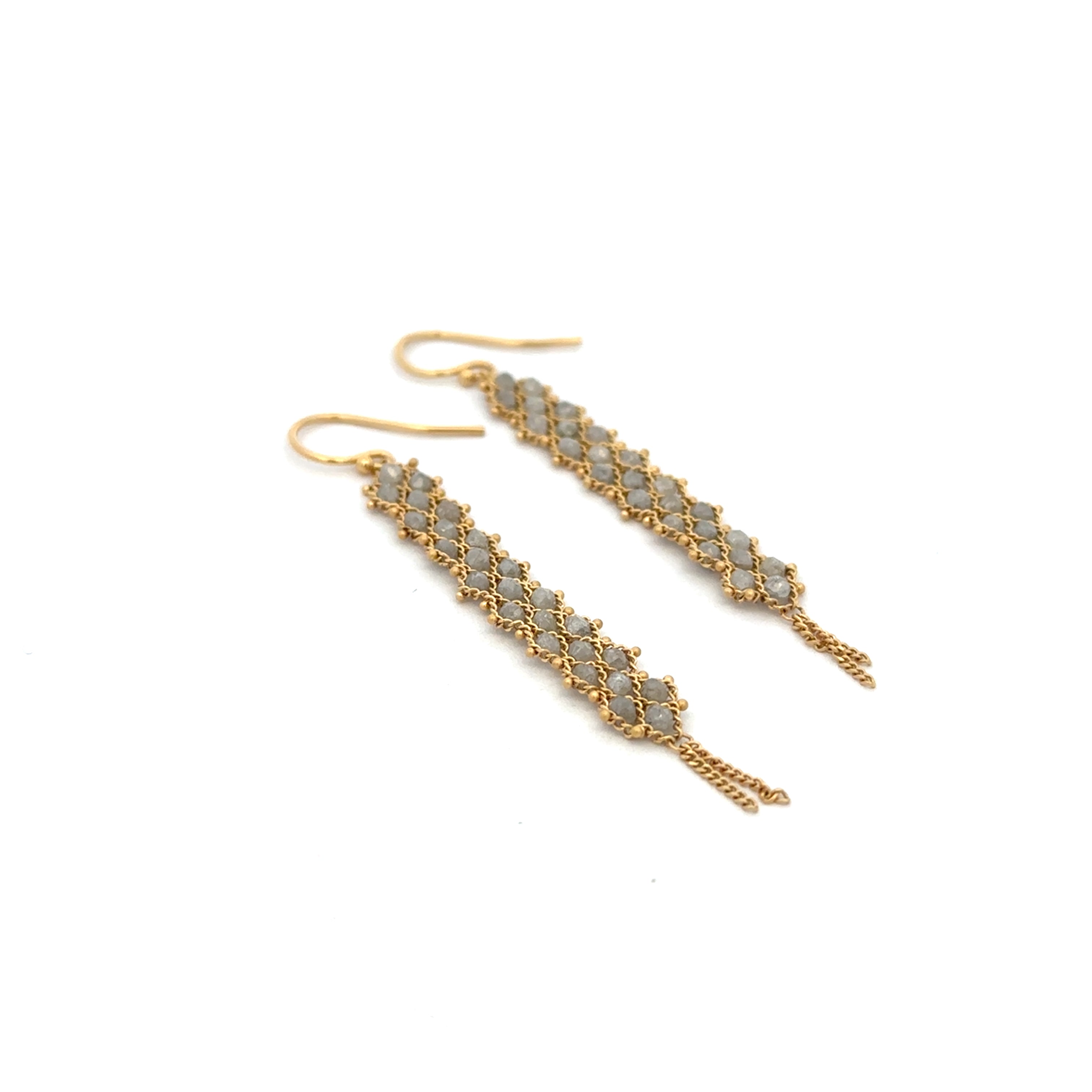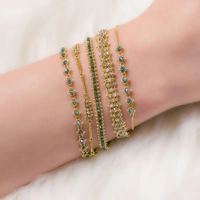 Sara Freedenfeld honors her late grandmother, Amalia, with her stunning jewelry collection Amali. While traveling in South America, Sara became interested in and began to learn macrame in the Andes Mountains of Chile. Sara has a truly distinct vision that combines her evident passion for colored gemstones with her textile approach to goldsmithing. Many of her pieces are one-of-a-kind, created with unique gemstones and designed with woven or draped gold elements that create delicate movement when worn.