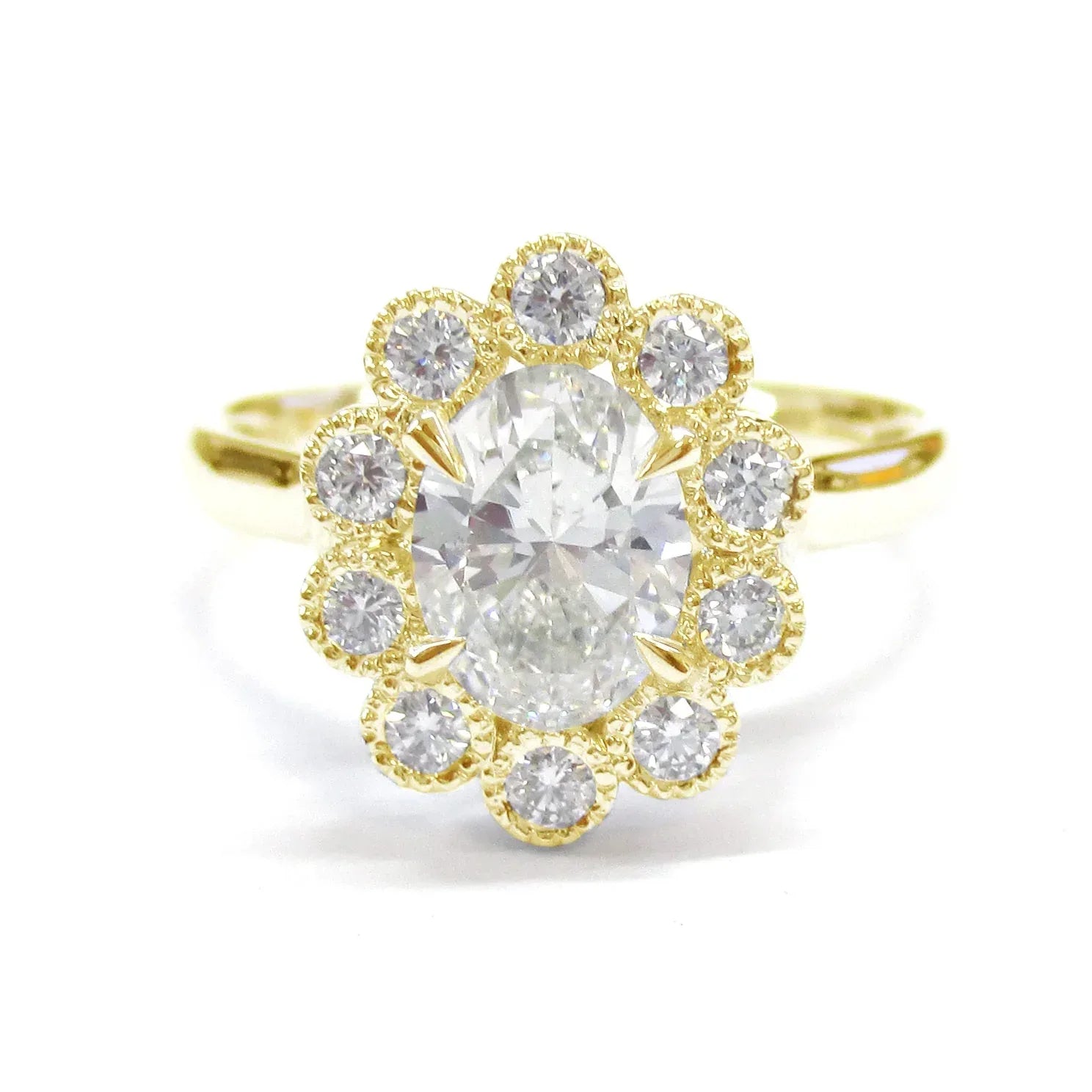 Rahamivov Oval Diamond Cluster Halo in Yellow Gold