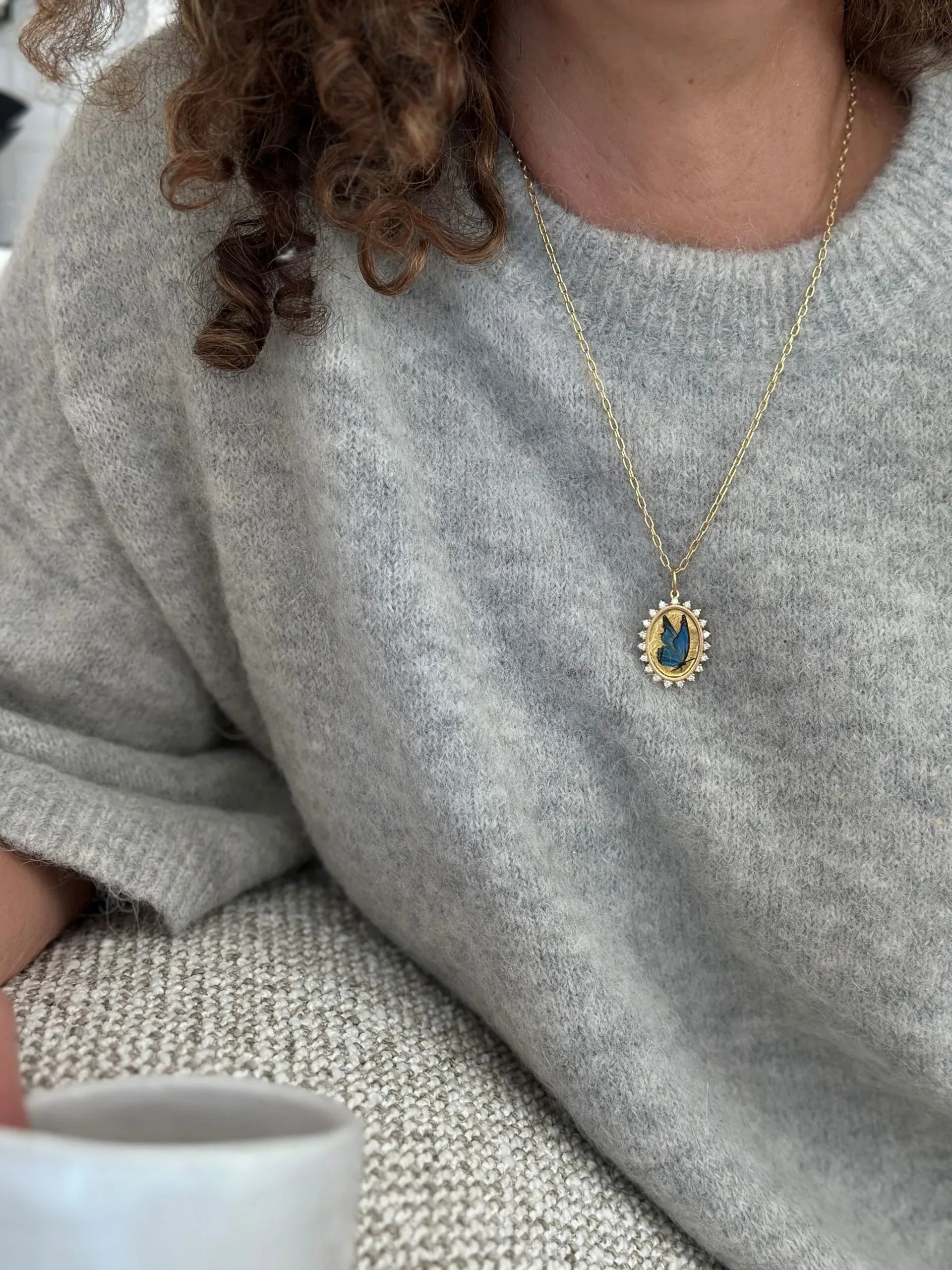 18 karat yellow gold large oval hand painted butterfly charm designed and crated by Erica Molinari. The charm features a hand painted enamel butterfly, with prong set diamonds around the border. The diamonds together weigh .57cts. Style number HP3f-4