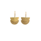 18 karat yellow gold Sun Halo earrings designed and created by Sia Taylor. The earrings feature two half moon shapes, one above the other, created in 18 karat yellow gold with arc edges creating a rainbow effect in the gold. The halfmoons drop from gold earwires and measure 1.2cm in length. Style RE5Y.
