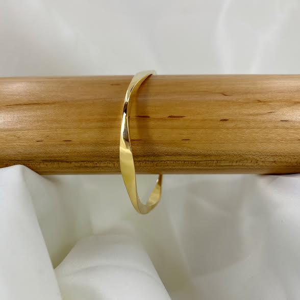 18 karat yellow gold four-sided bangle designed and created by Von Bargen’s Jewelry. The bracelet features a soft squared shape with flattened corners. The bracelet is finished in high polish. The style number is 1579-18Y.