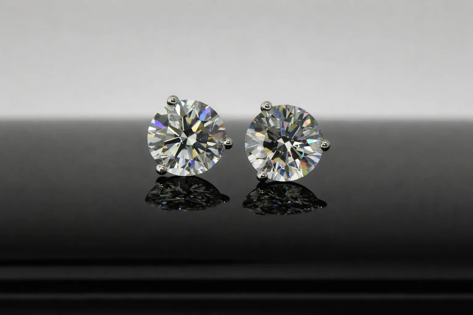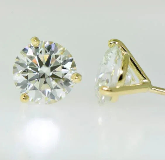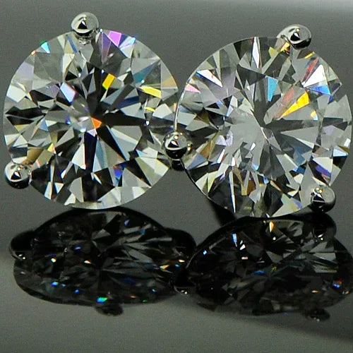 Platinum and diamond stud earrings designed and created by Von Bargen's Jewelry. The earrings feature two ideal round brilliant cut diamonds together weighing 4.02 carats set in 3-prong platinum martini settings. The diamonds are H in color and VS2 in clarity. The earrings have like metal posts and friction backs. Style E3P-PT-247
