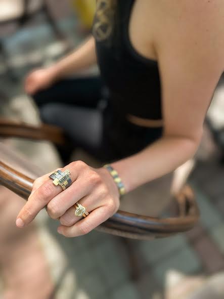 18 karat yellow gold handmade diamond ring. The ring features an oval brilliant cut diamond set in an elevated bezel that is accented with round brilliant cut diamonds. The feature diamond weighs 1.03 carats, is W-X in color and VS1 in clarity. The center diamond is accompanied by GIA report #2171790976. The diamond is set in a full bezel accented with flush set round brilliant cut diamonds. The entire ring is handmade and features Todd’s signature patina. The ring is a finger size 6.5. The ring style is R481-18ky-1.03-vb